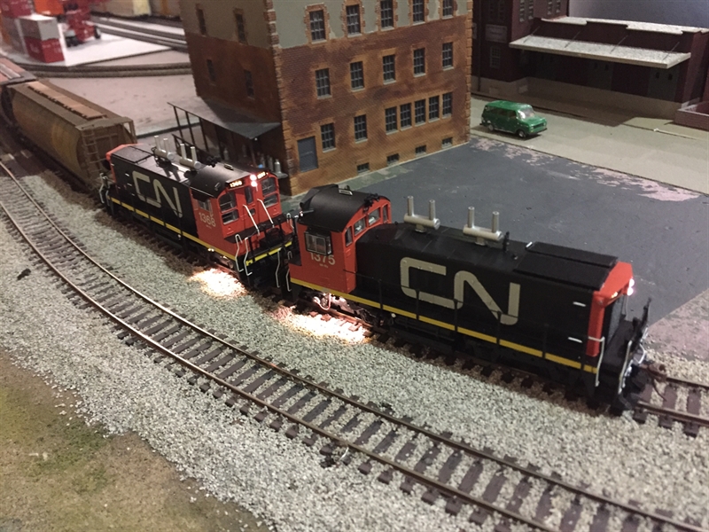 A pair of CN SW1200RS switchers visited the RRMA layour in Moose Jaw in 2019. The highly-detailed units are both built by Rapido Trains and are from Mike Shirran's collection.